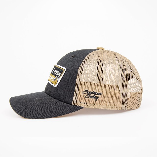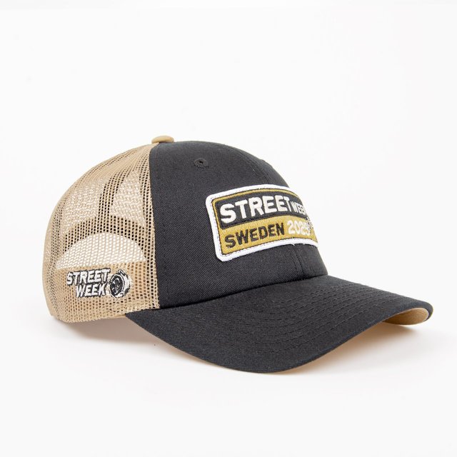 Street Week 25 Official Trucker Cap med svart framsida och mesh i khaki med böjd skärm och snapback (justerbar storlek). Stor logopatch, Street Week och Southern Swing brodyr på sidorna och "The ultimate race challenge" på baksidan.