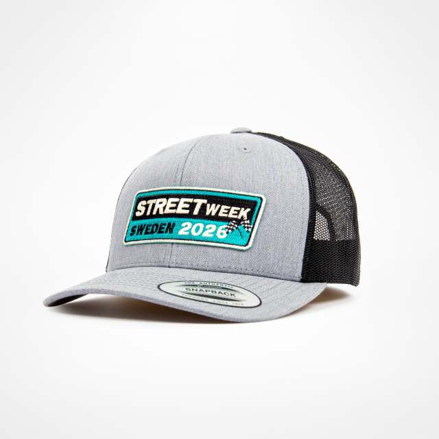 Street Week 2026 Retro Trucker i gråmelerad och svart – en klassisk keps med modern twist. Den böjda skärmen och justerbara storleken ger perfekt passform och komfort, oavsett om du är på tävling eller ute i vardagen. En stilren keps för alla som vill bära Street Week-stilen med stolthet.
