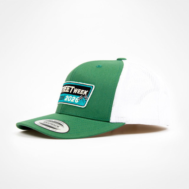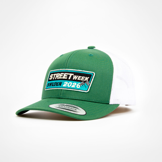 Retro trucker-keps i grön och vitt med Street Week 2026-design. Den böjda skärmen och den justerbara passformen ger hög komfort och en bra passform. En tidlös keps som fungerar lika bra i depån som till vardags. RACING HISTORY IN THE MAKING!