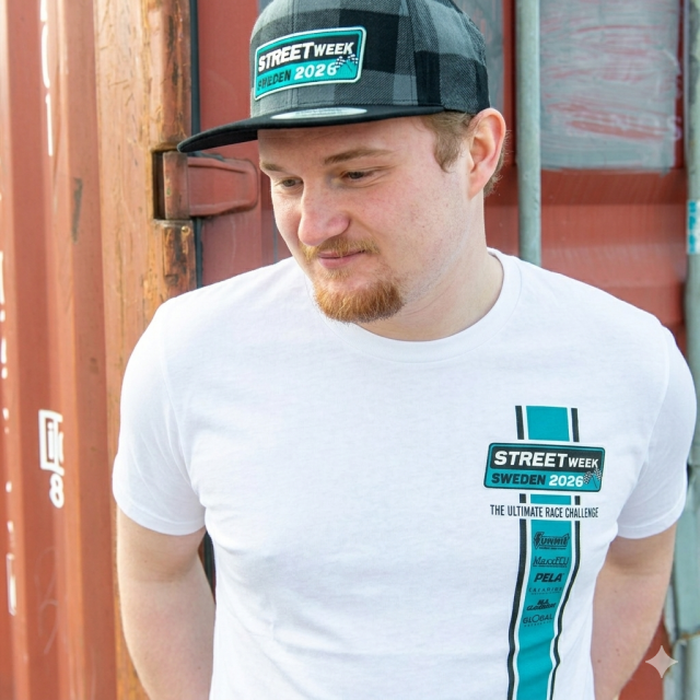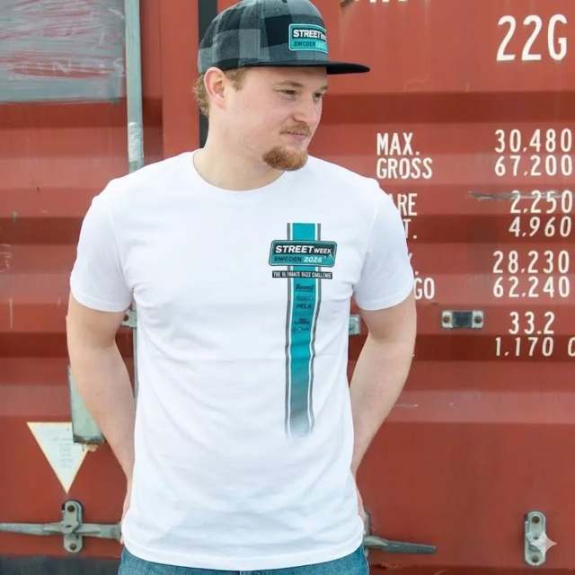 Street Week Central Swing 2026's officiella t-shirt. Klassisk vit t-shirt i skön bomull med årets motiv på bröst och rygg. Förbeställning (pre-order), skickas efter påsk.